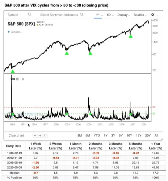 Earlier this year, on April 7th, the VIX closed above 50 — an exceptionally high level that reflected intense market fear. Remarkably, within just 10 days, by April 17th, the VIX had fallen back below 30, signaling a rapid shift toward calmer market expectations.